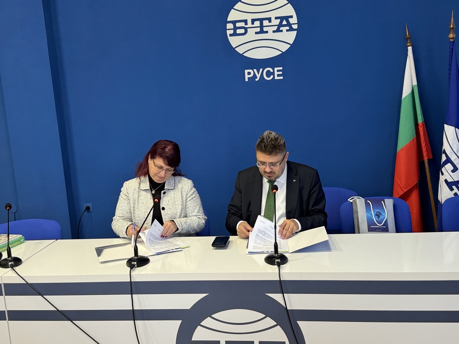 Today, December 17th , 2025, the Rector of the University of Ruse, Assoc. Prof. Desislava Atanasova, PhD and the Director General of BTA, Kiril Valchev, signed an additional agreement to continue using the premises of the Agency's press club in Taraclia, Republic of Moldova.