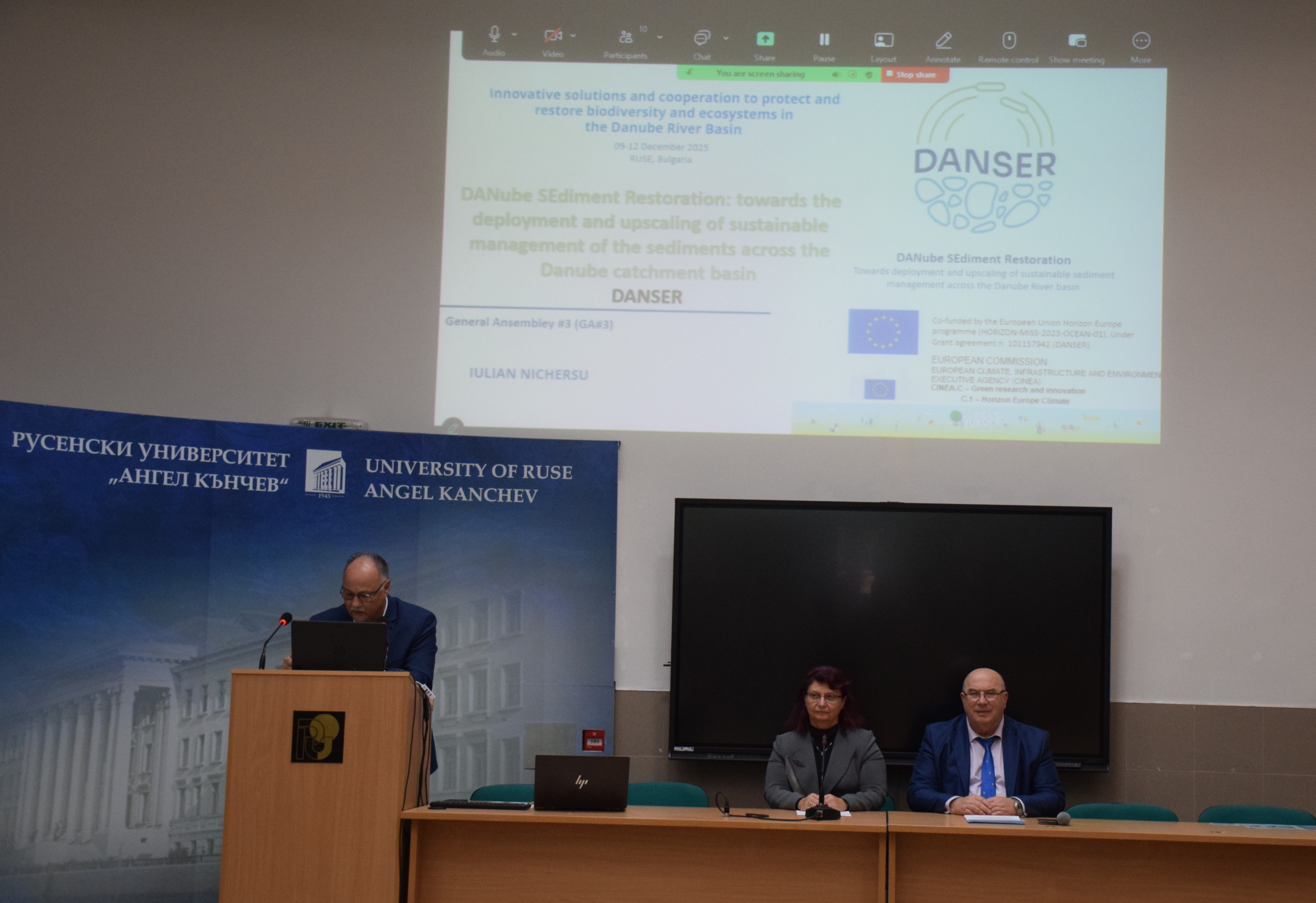 Today, December 10th, 2025, the Third General Assembly of the DANSER project - DANube SEdiment Restoration, funded by the HORIZON-MISS-2023-OCEAN-01 programme, was opened in room 2.101 at the University of Ruse.
