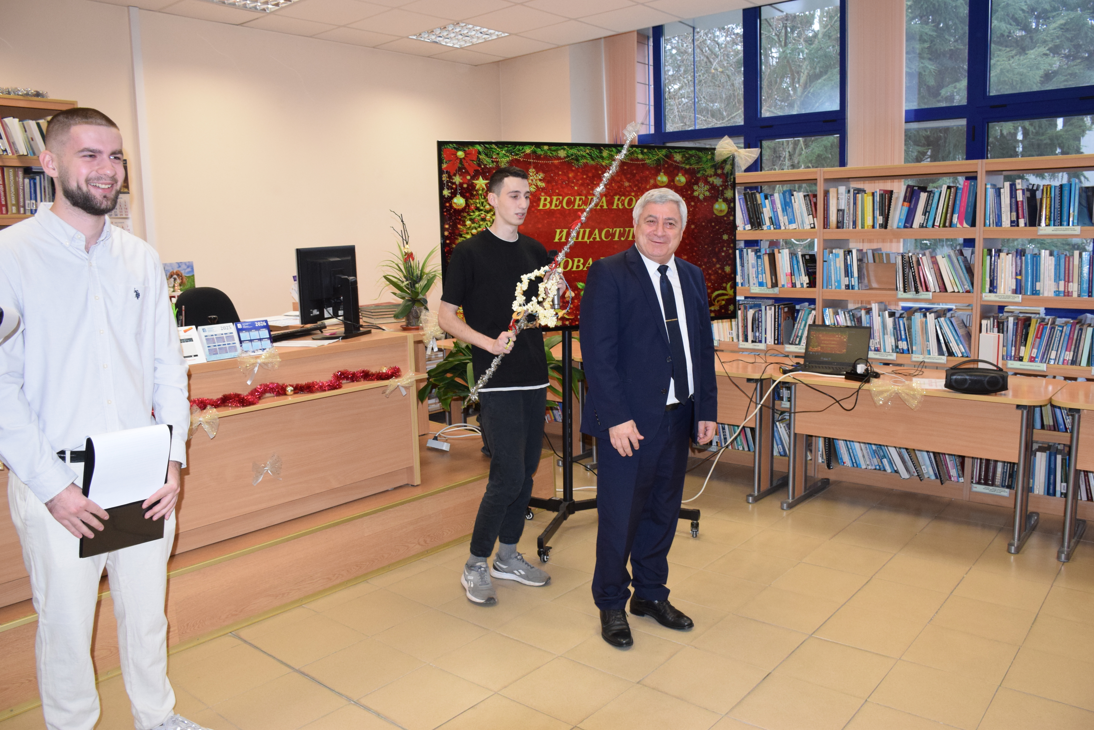 Today, December 17th , 2025, a Christmas party was held in the reading room of the library of the university of Ruse for foreign students studying at Ruse Alma Mater. It was organized by the Foreign Students Department and dedicated to the traditions of Christmas celebrations in Bulgaria.